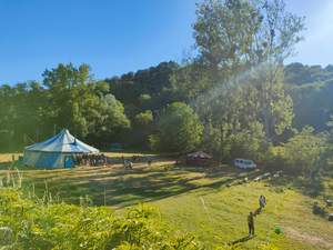Les camps de cirque se déroulent au Vernet d’Ariège dans un cadre idyllique ! Nous sommes installés au frais, à l'ombre des séquoias, dans un camping très agréable. Notre chapiteau est implanté en bordure de l’Ariège ce qui nous permet des petits moments de rafraichissement bienvenus.